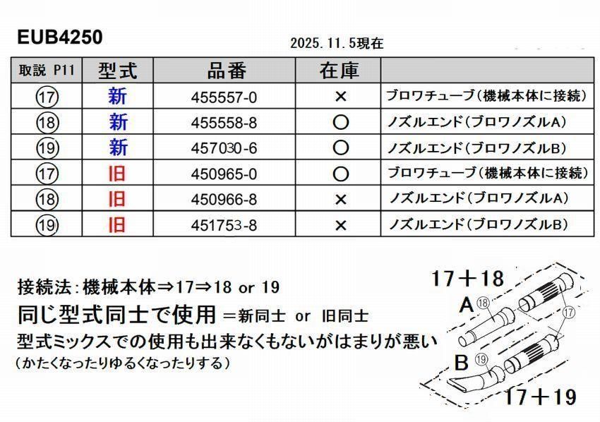 新品番457030-6と旧品番450965-0のブロワチューブを一緒には使えませんのでご注意ください。